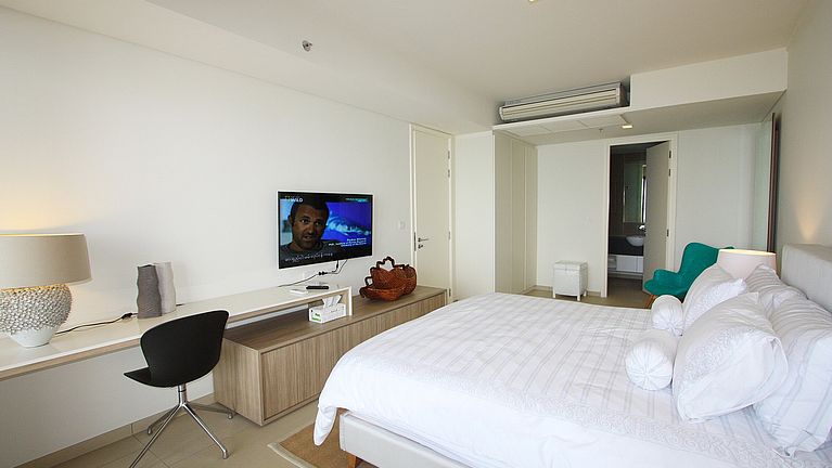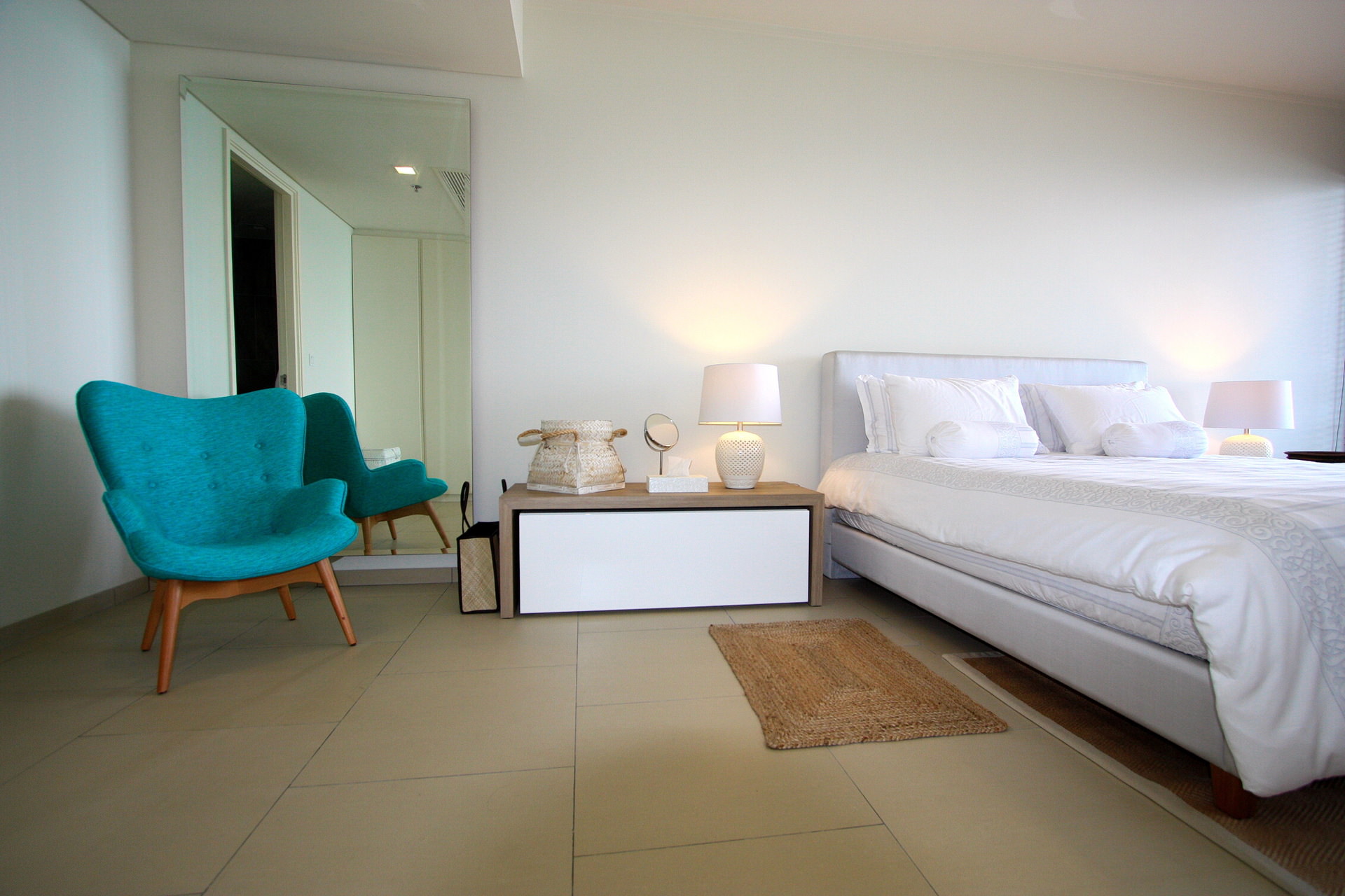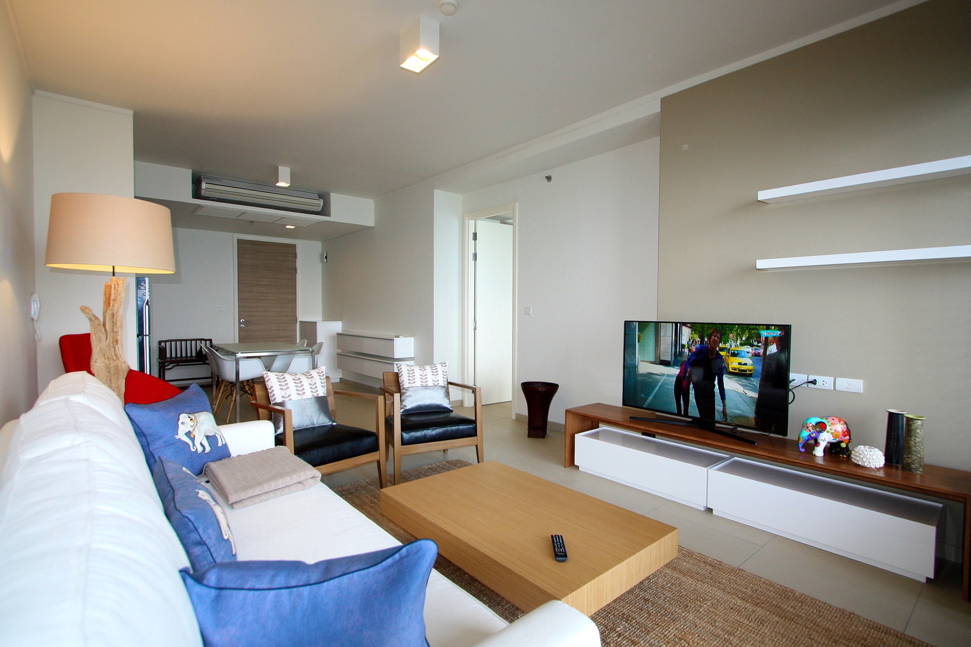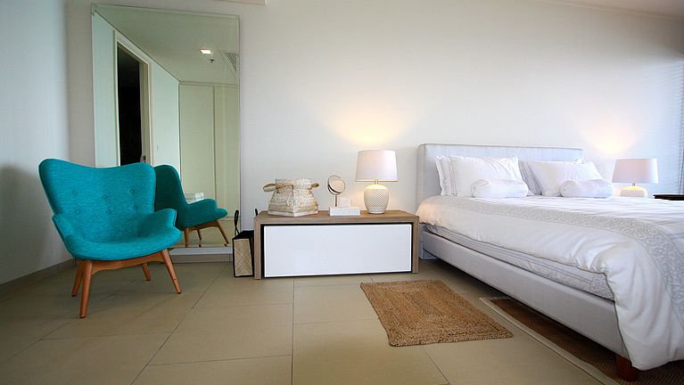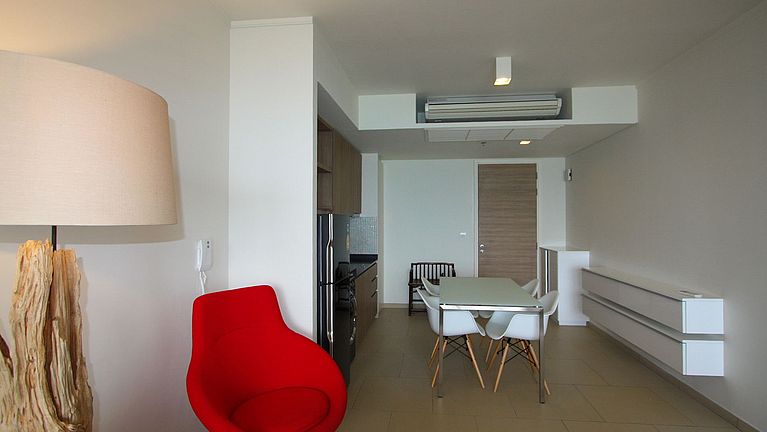 New highrise beachfront condominium at the sandy Wongamat beach on prime location. Spacious apartment featuring high floor to ceiling windows, fully equipped kitchen, modern bathrooms and sundeck balcony.