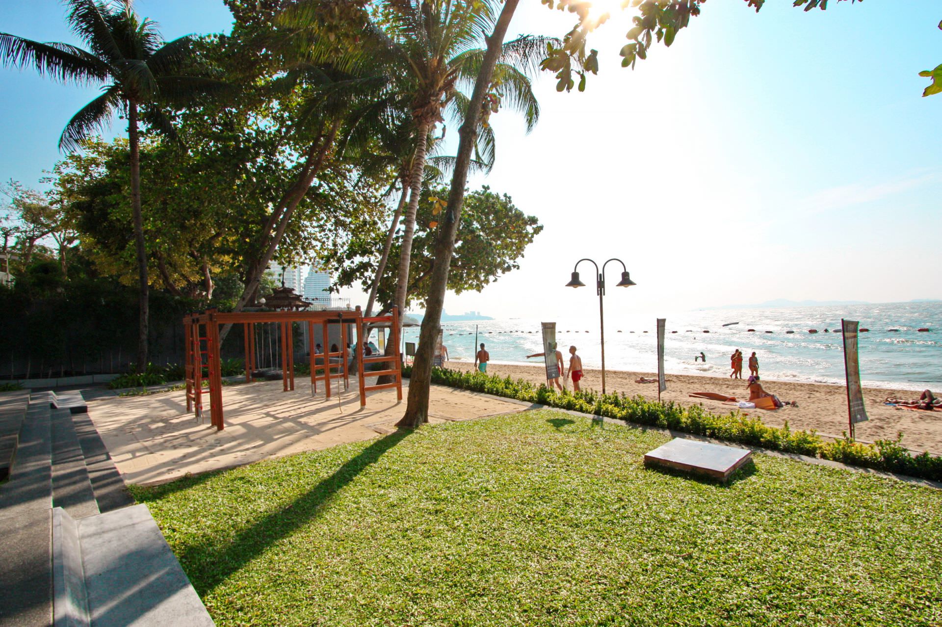 ทิวทัศน์จากห้องพักมองเห็นทะเล เกาะล้าน และหาดวงศ์อมาตย์ คอนโดใหม่แห่งนี้อยู่ริมชายหาดที่หาดวงศ์อมาตย์ซึ่งตั้งอยู่บนทำเลที่ดีที่สุดของพัทยามีห้องรับแขกขนาดกว้างขวางที่คุณสามารถมองเห็นแสงพระอาทิตย์ยามเย็นตรงหน้าระเบียงของคุณ ที่ระเบียงมีประตูบานเลื่อนระเบียงสูงจากพื้นจรดเพดาน ห้องครัวพร้อมอุปกรณ์ครบครัน ห้องนอนใหญ่มีหน้าต่างสำหรับเปิดรับลม ห้องน้ำพร้อมเครื่องทำน้ำอุ่นและระเบียงขนาดพอดี คอนโดแห่งนี้สามารถเดินลงถึงชายหาดโดยตรง ห้องออกกำลังกายที่มีอุปกรณ์ครบครัน มีสระว่ายน้ำอินฟินิตี้ สระว่ายน้ำเด็ก ลานอาบแดดและมีภูมิทัศน์พื้นที่ร่มรื่น ระบบรักษาความปลอดภัยตลอด 24 ชั่วโมง